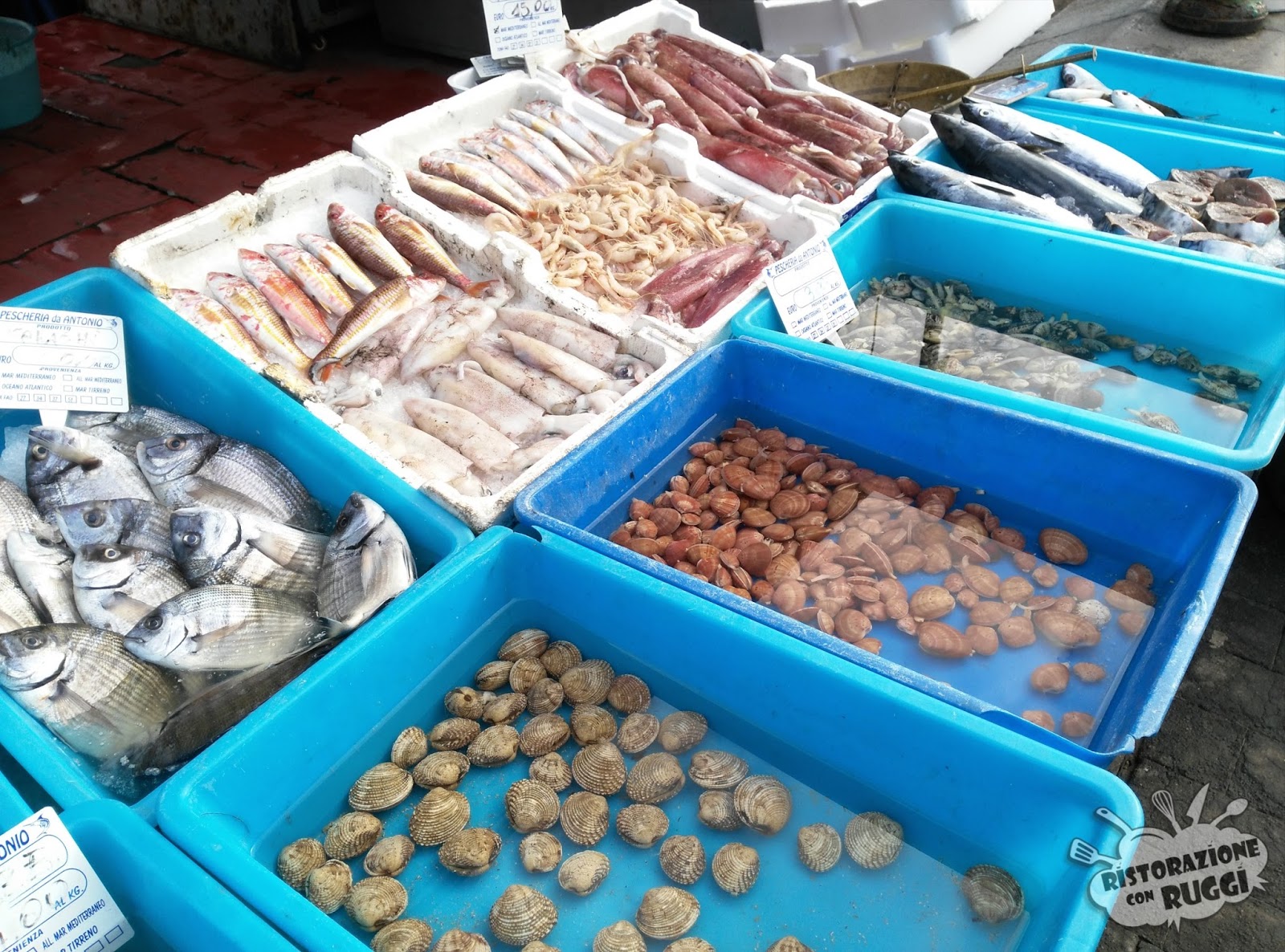 Ci dirigiamo poi dal pescatore di fiducia di Alessandro, Pescheria Da Antonio